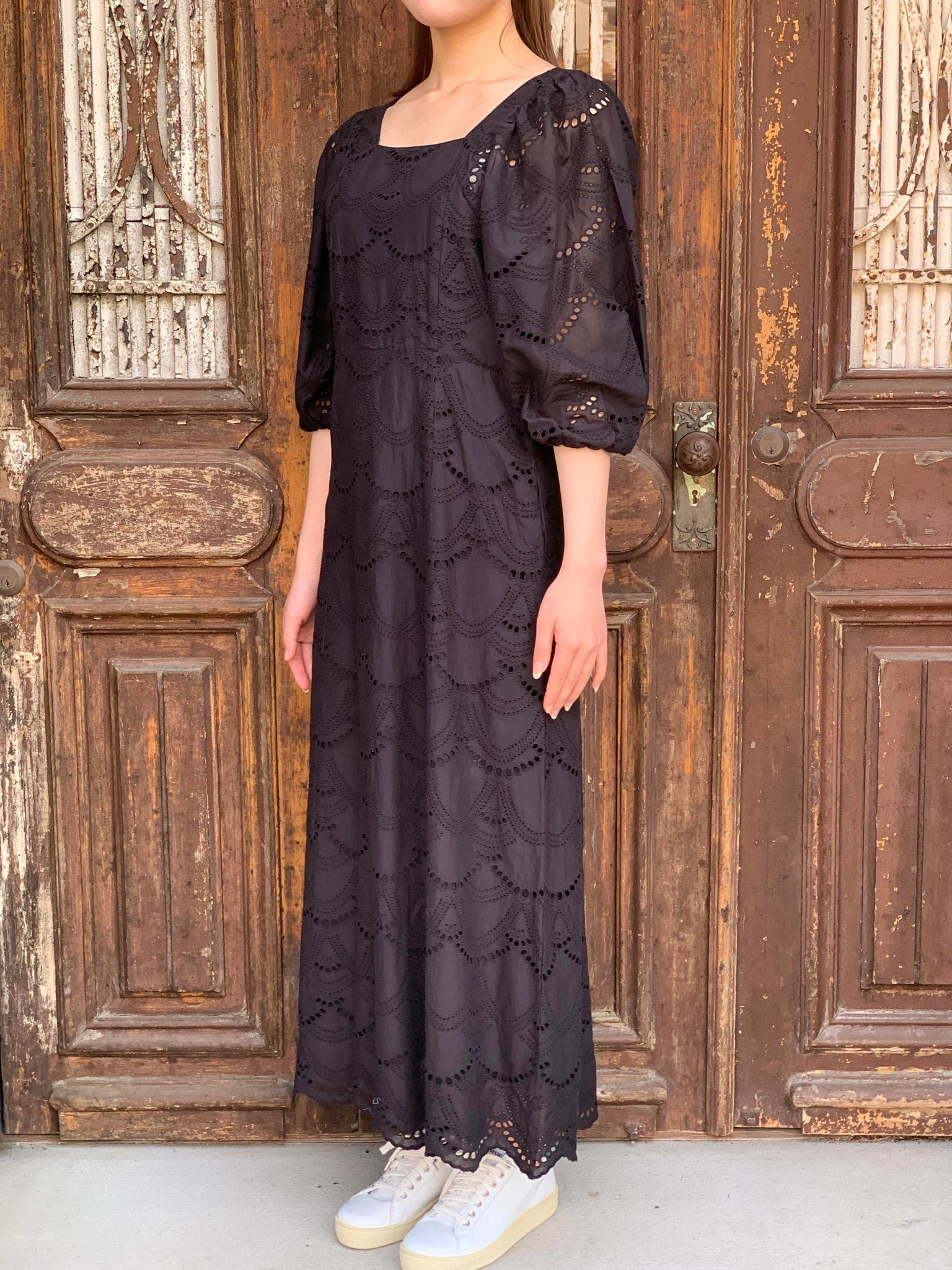 【SALE】COTTON VOILE DOT HEMLA DRESS 010431GT5 (ヌキテパ)