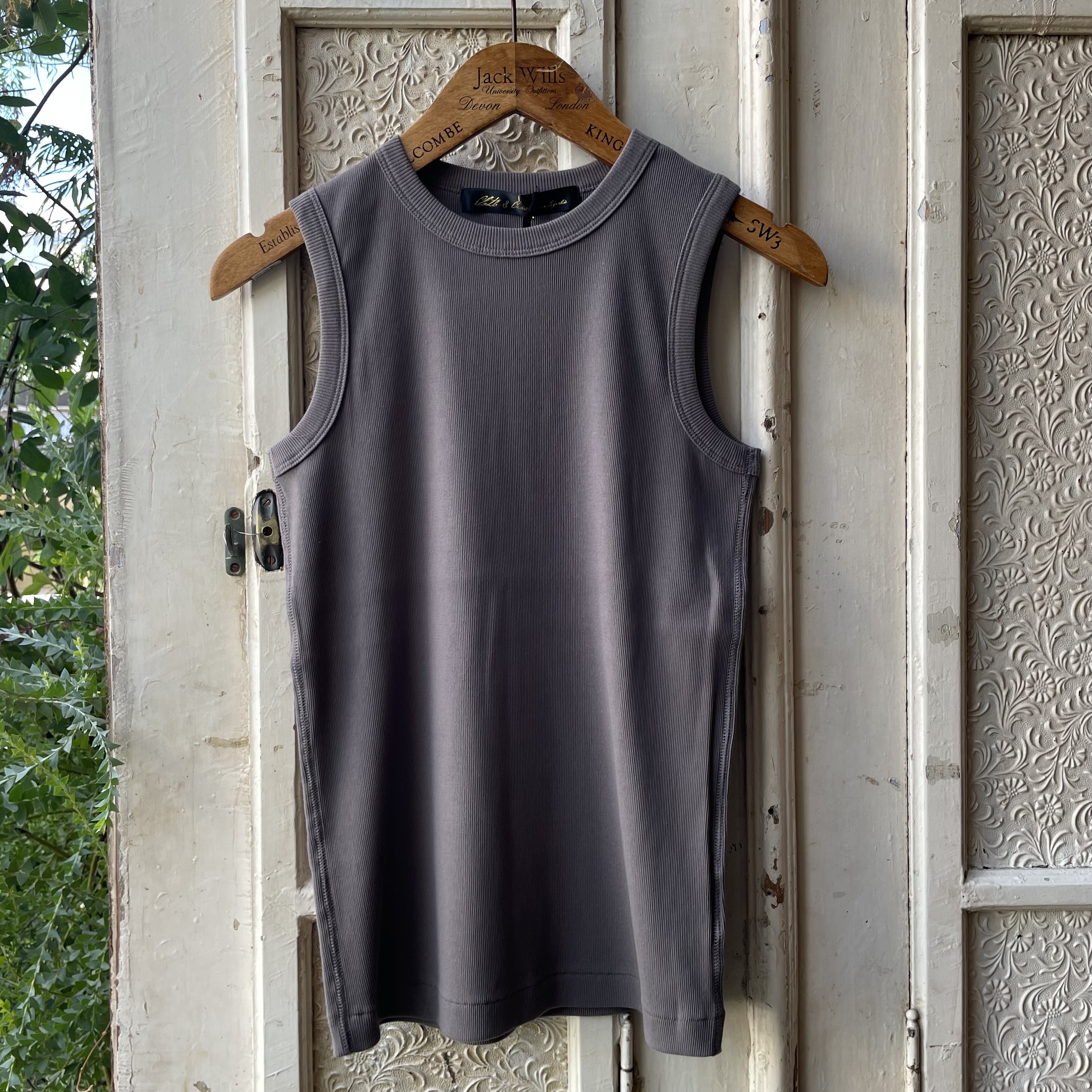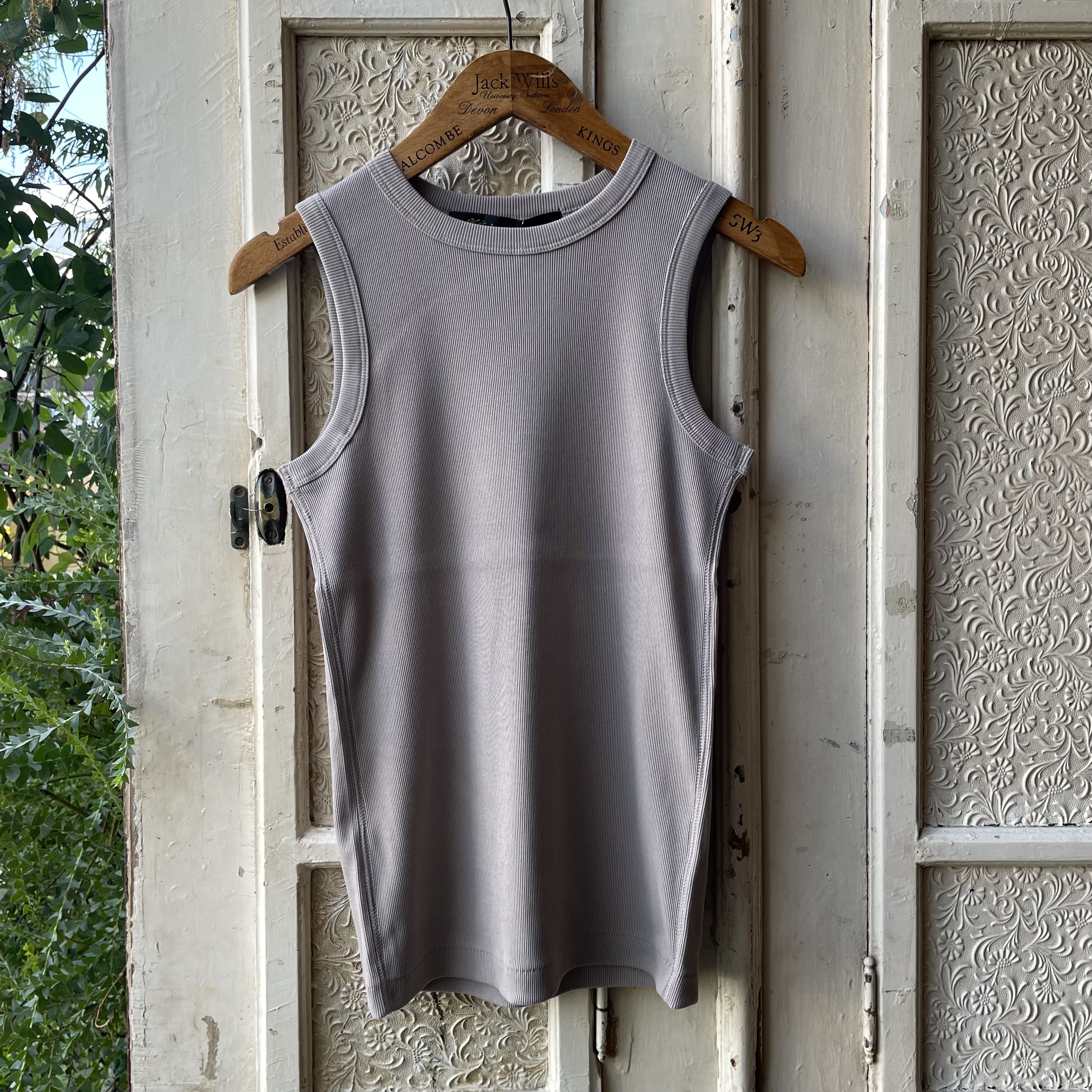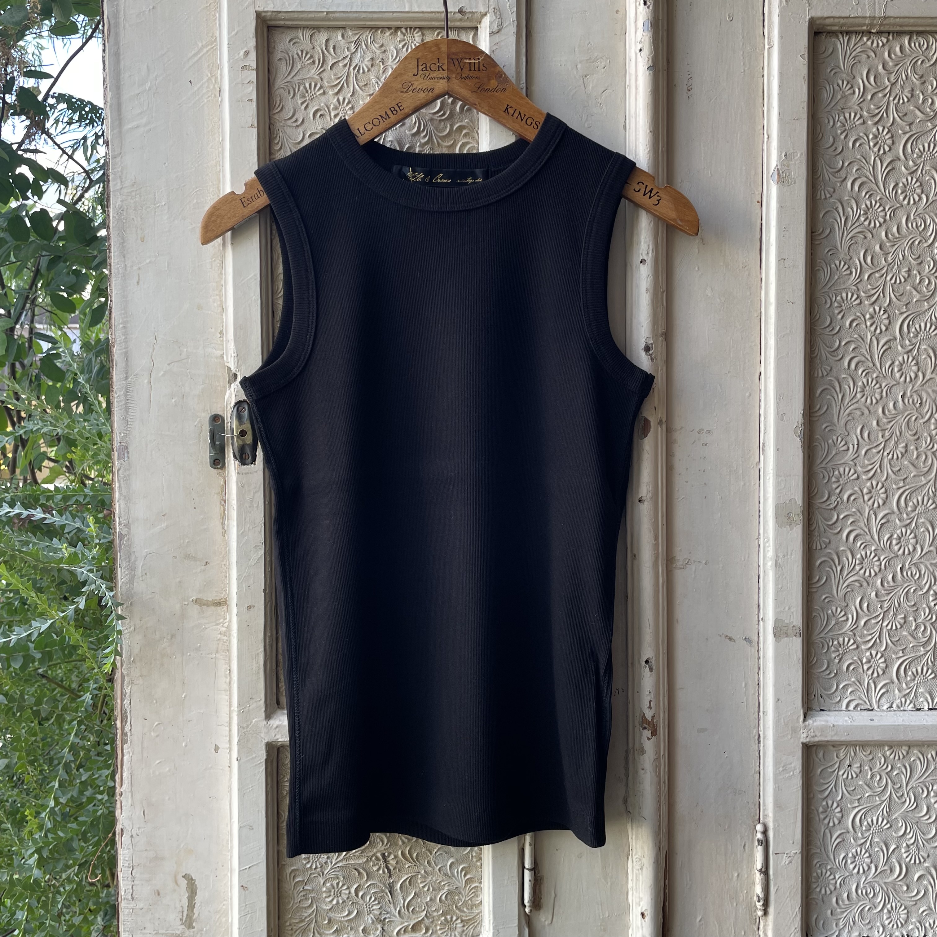 コンパクトなネックラインと深めのアームホールがトレンドライクで、シャツやキャミソールドレスをレイヤードすれば旬のスタイリングに。