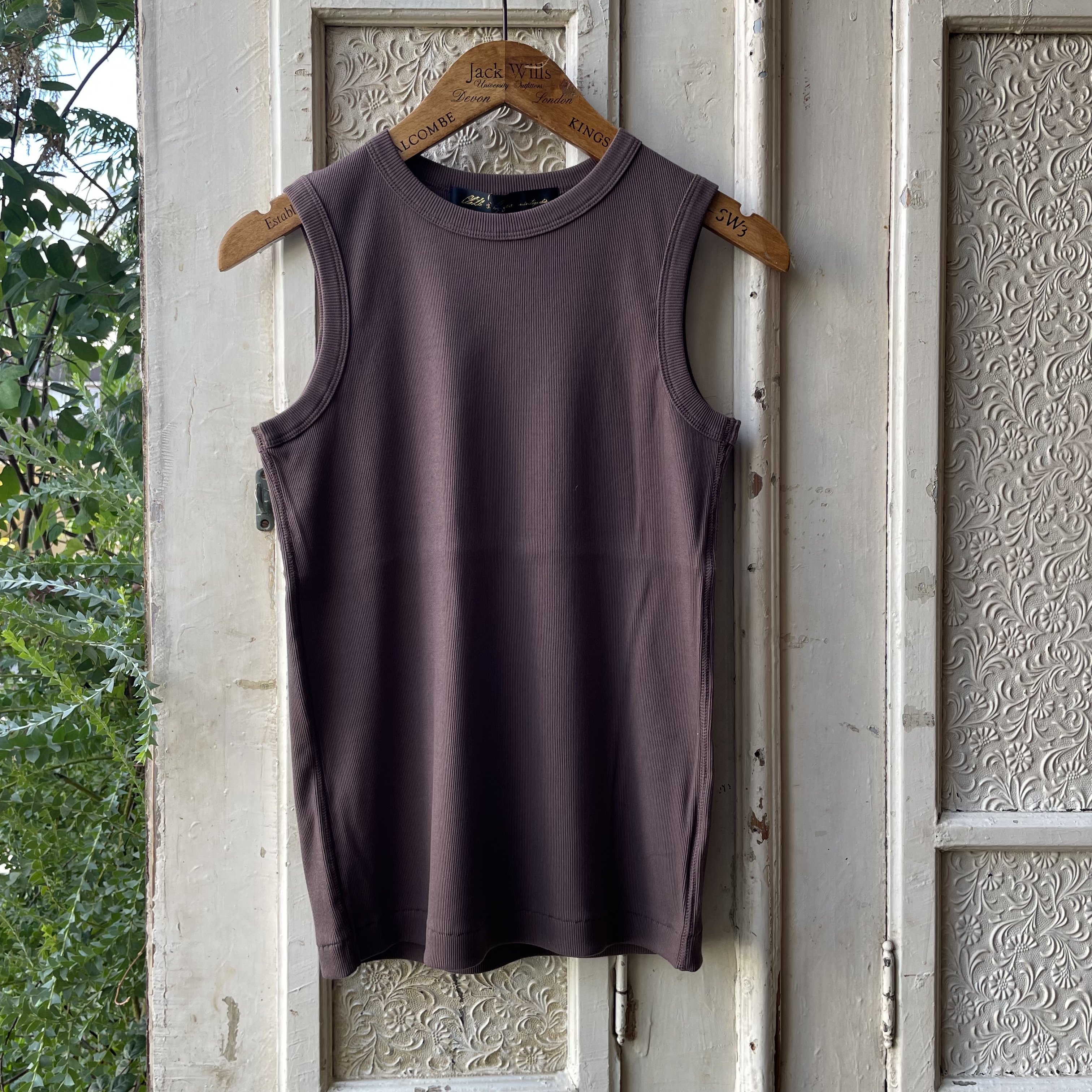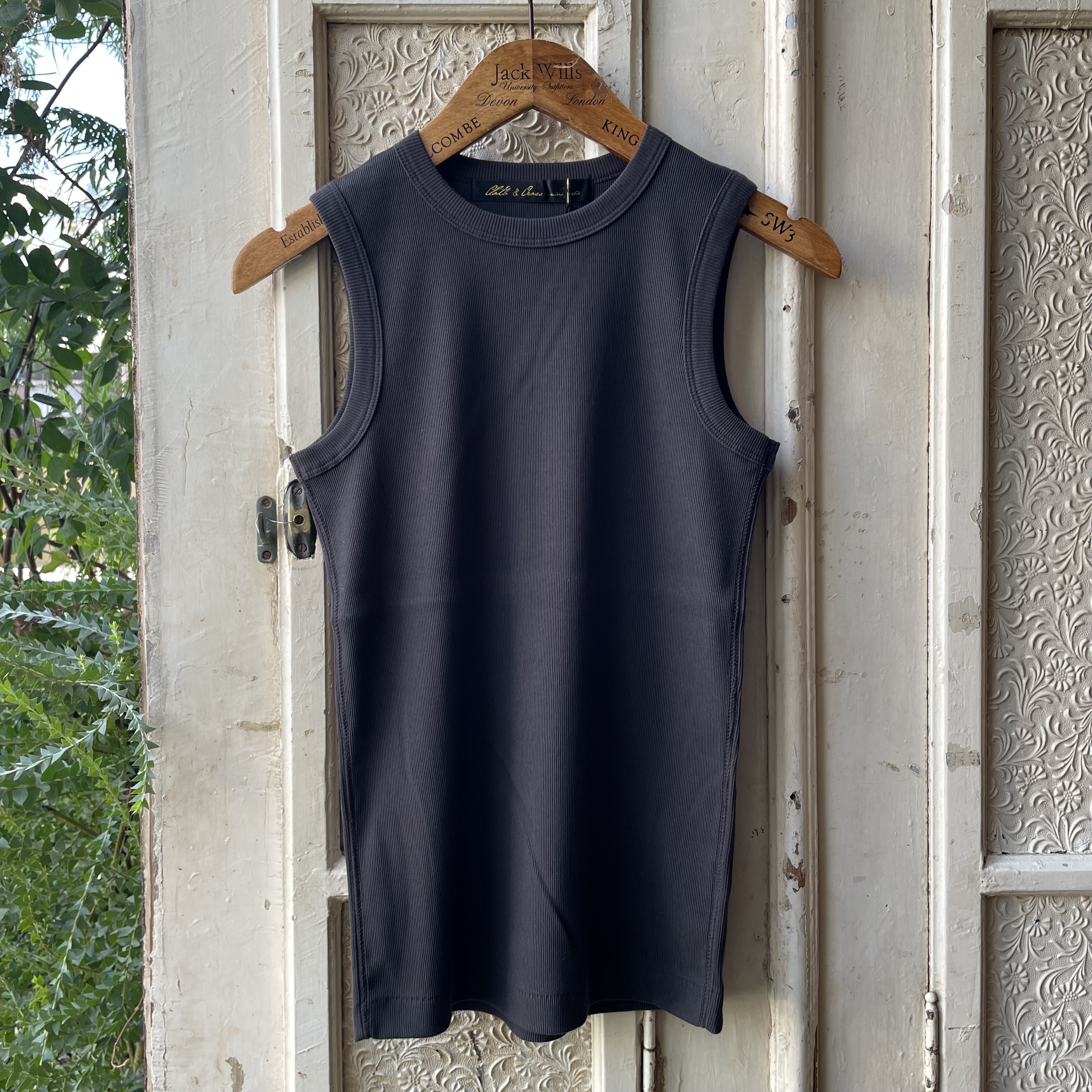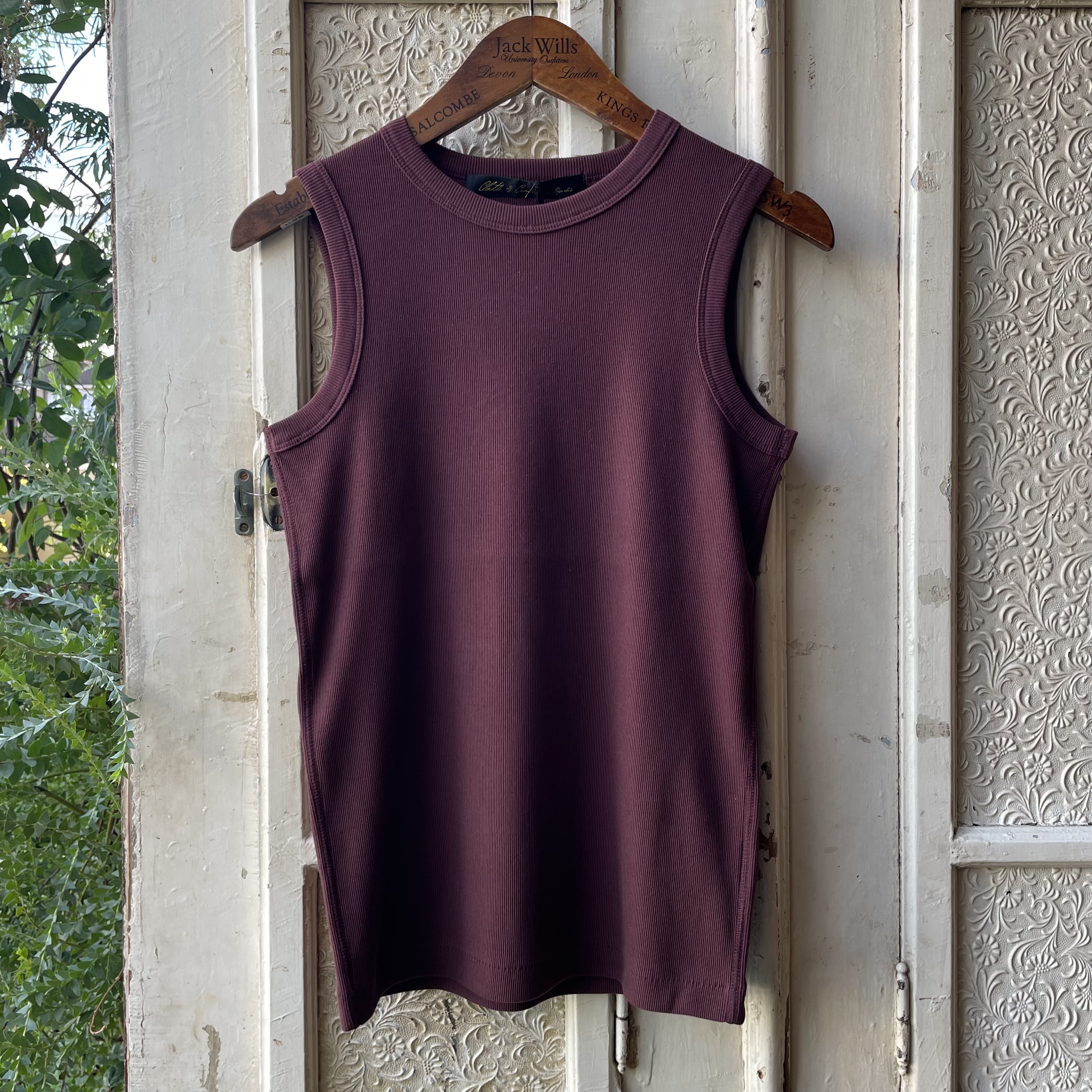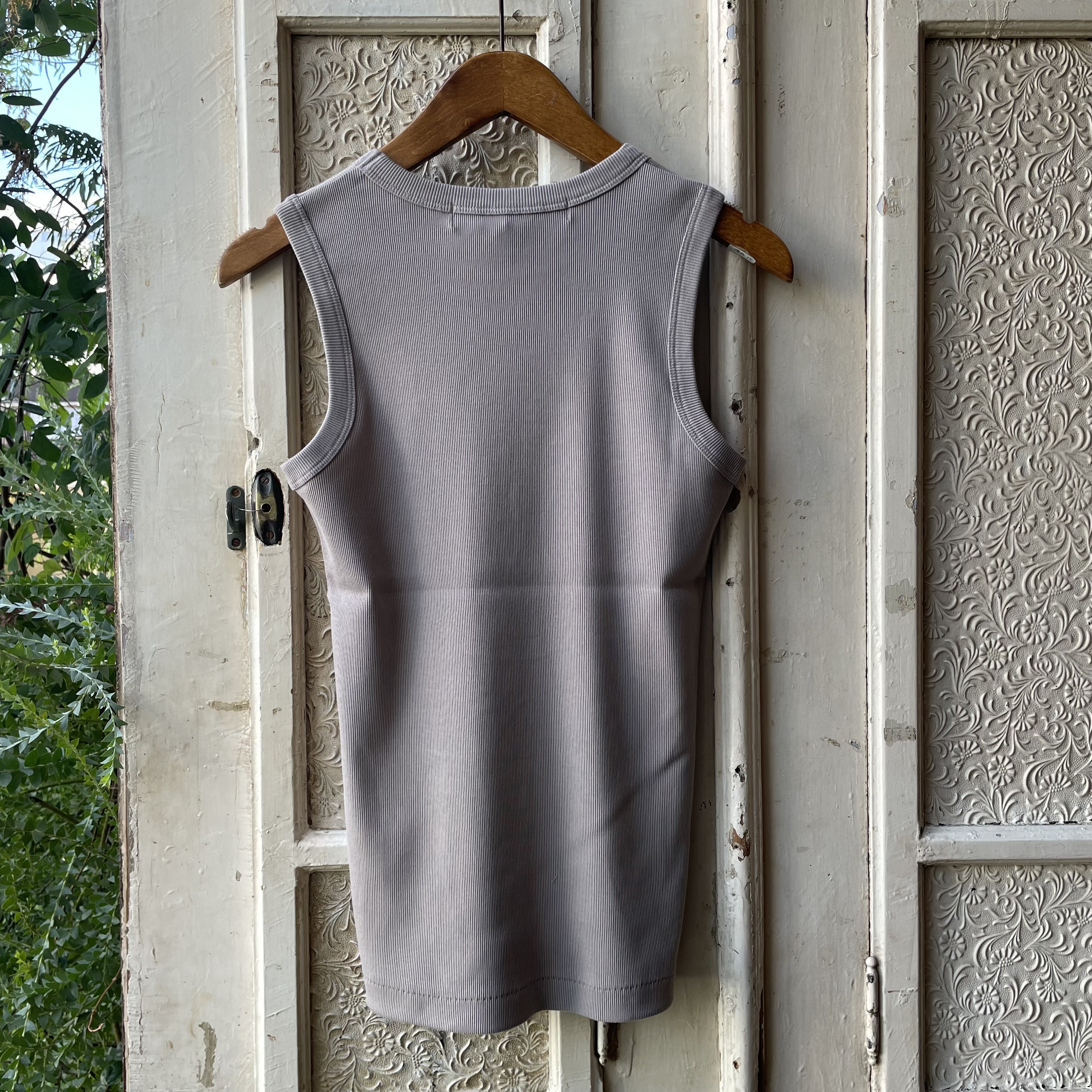 コンパクトなネックラインと深めのアームホールがトレンドライクで、シャツやキャミソールドレスをレイヤードすれば旬のスタイリングに。