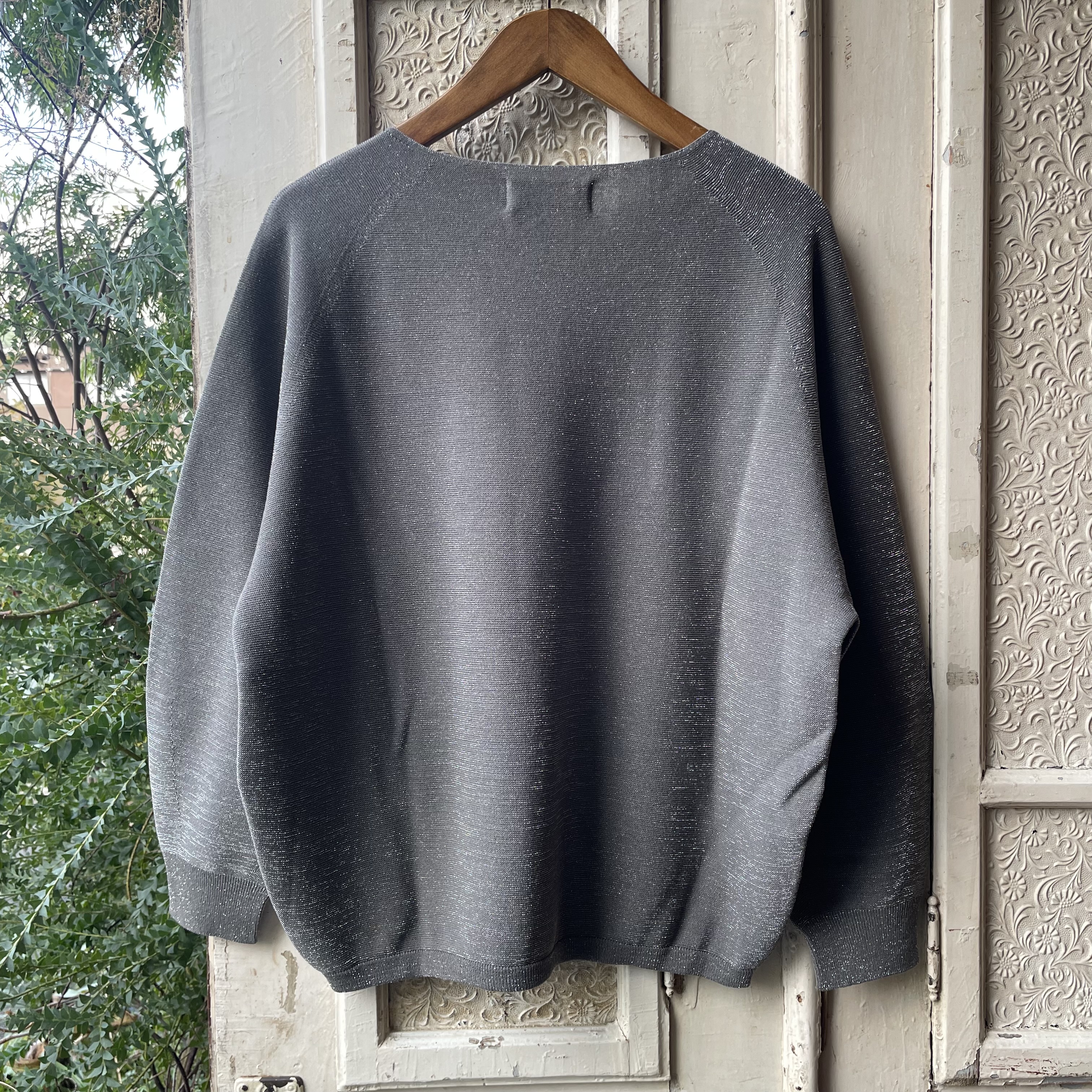 洗練されたシンプルな佇まいに、ラメ糸のさりげない輝きを添えた大人のためのニットプルオーバー。