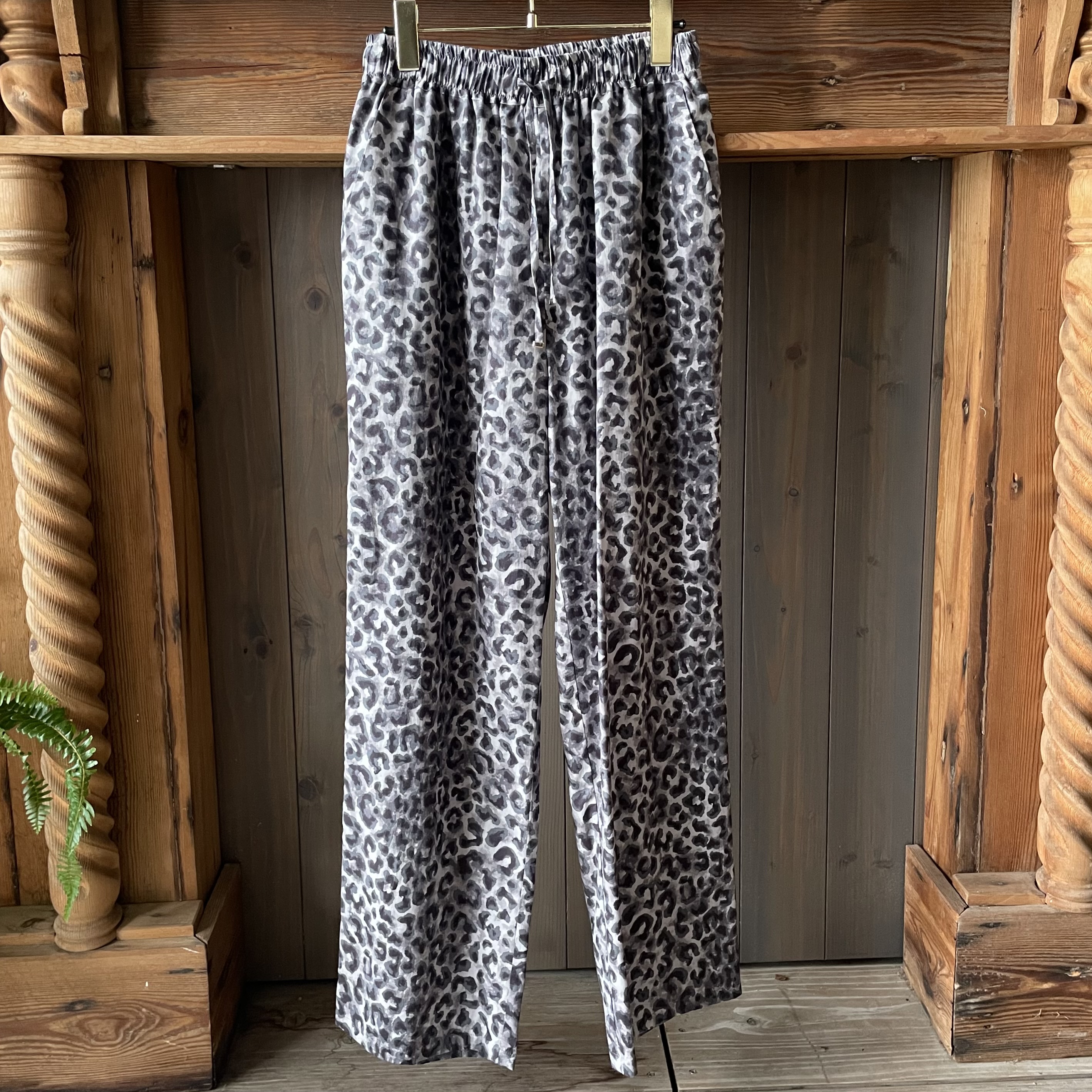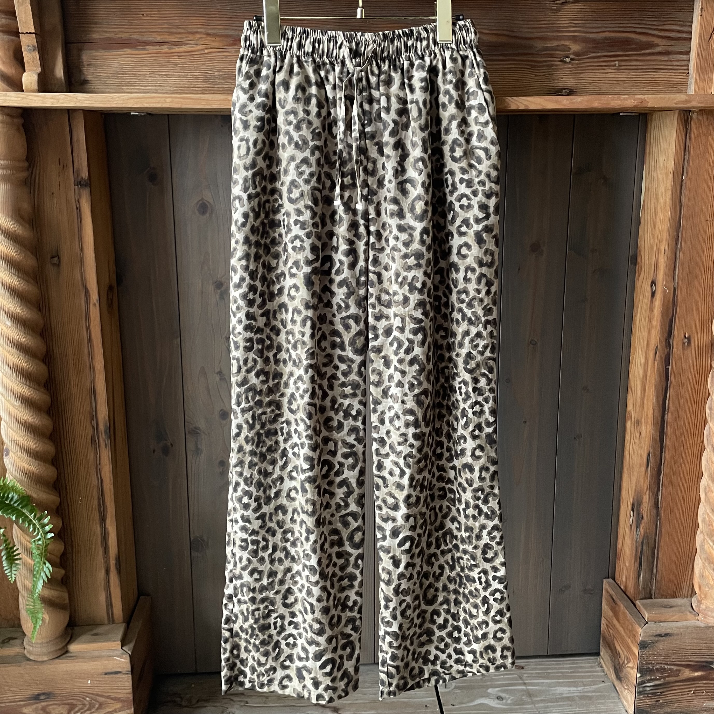 オリジナルで描いたレオパード柄のテキスタイルが、コーディネートのスパイスになるイージーパンツ。