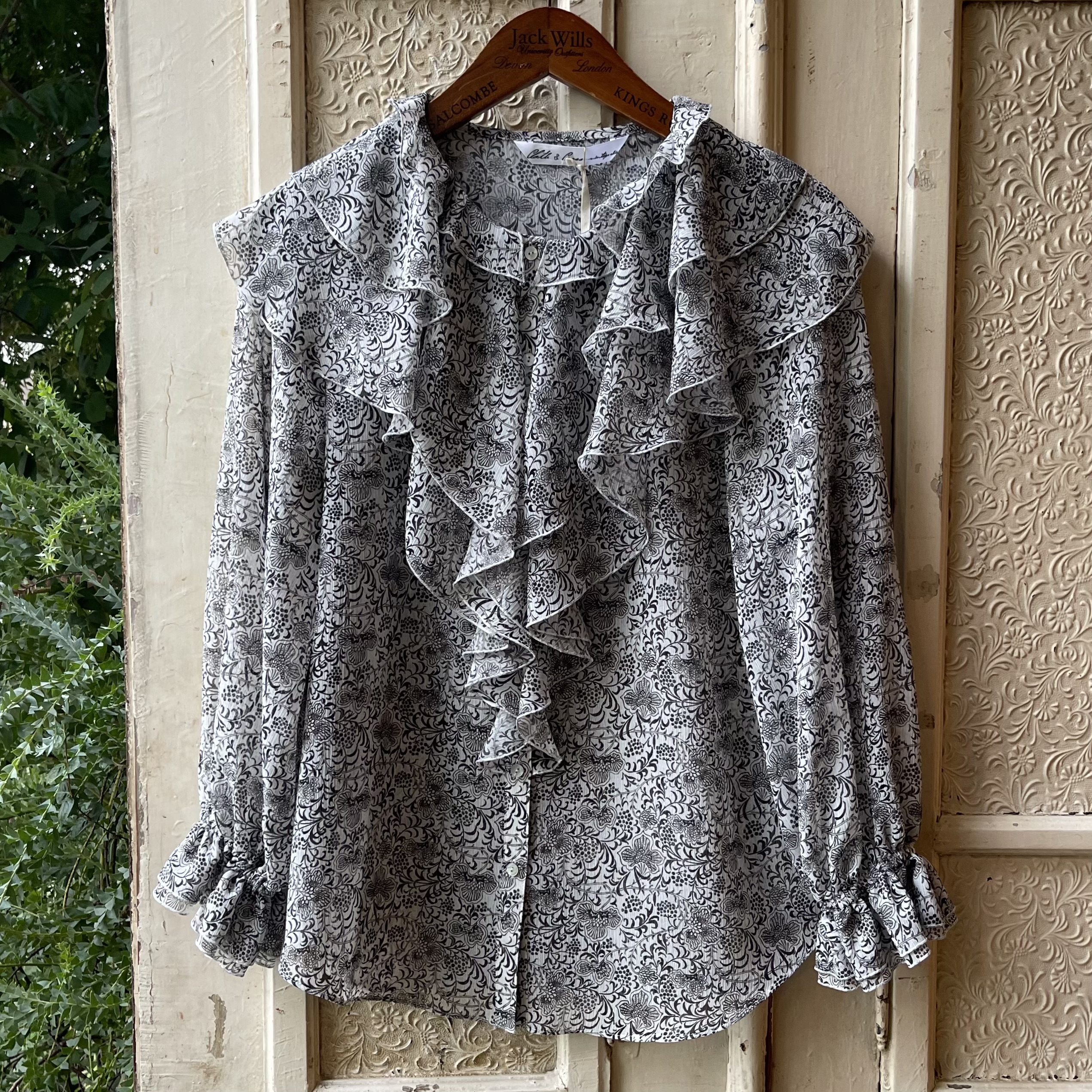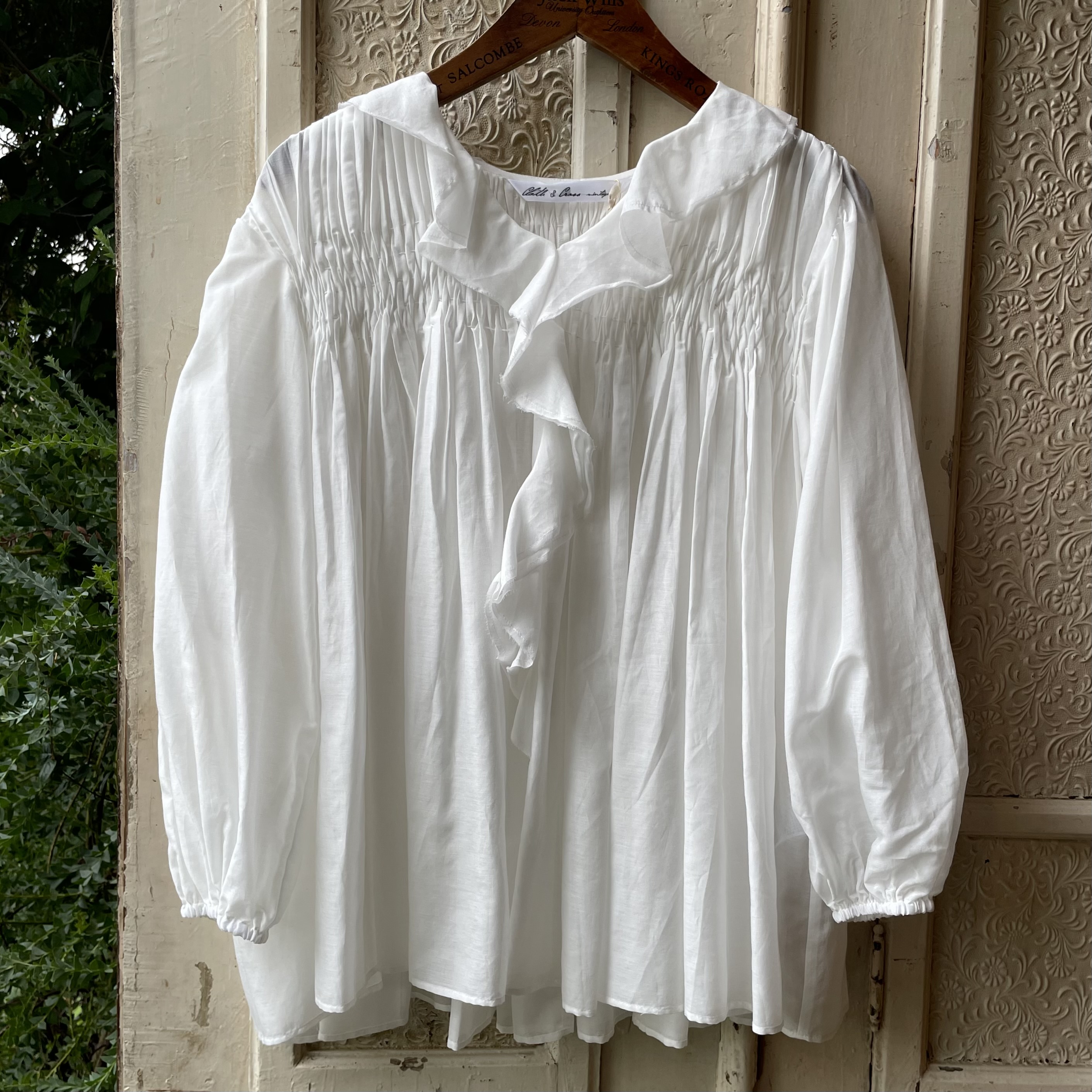 CLOTH&CROSS コットンシルクスモッキングラッフルブラウス ST-L1198